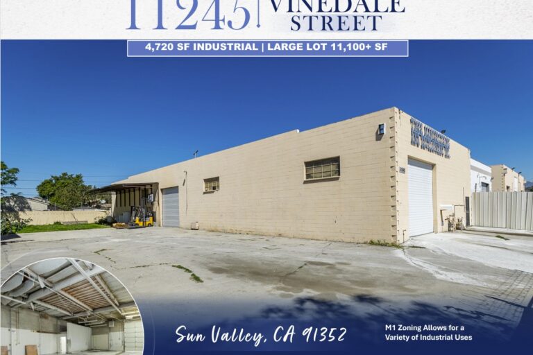 We are pleased to present 11245 W Vindale Street in Sun Valley, located just half a mile from the 5 Freeway entrance, this versatile two-unit industrial property offers 4,720 square feet of space on an 11,100 square foot lot, making it ideal for a variety of industrial uses.